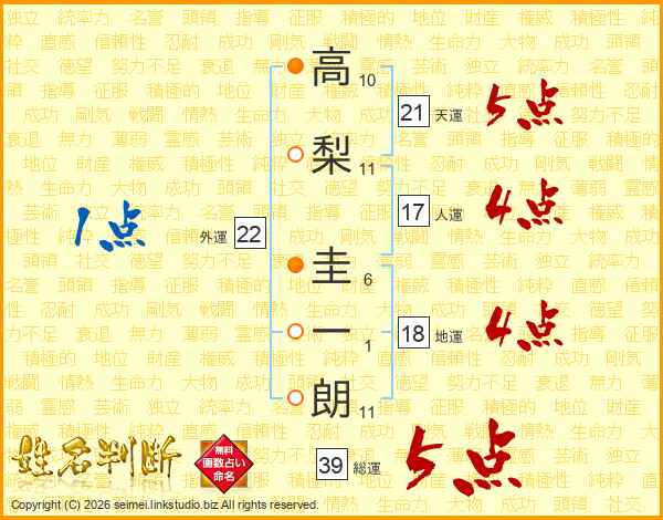 高梨圭一朗さんの天運は21画の5点!