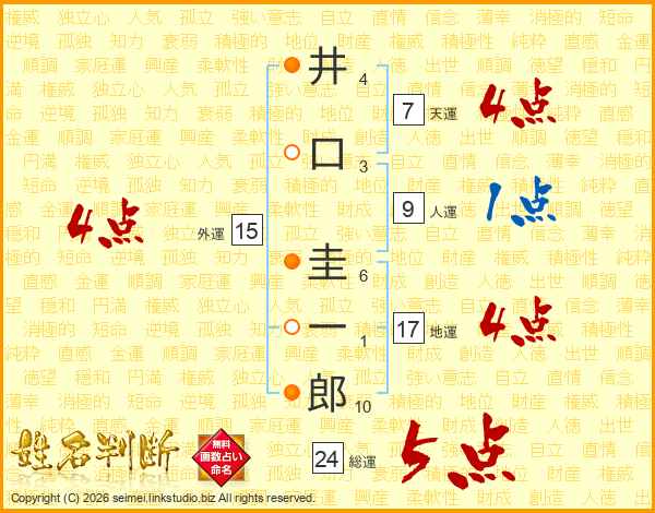 井(4画)口(3画) 圭(6画)一(1画)郎(10画)