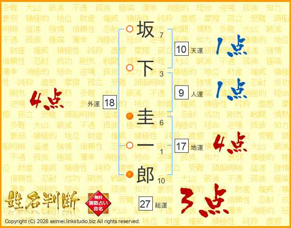 坂(7画)下(3画) 圭(6画)一(1画)郎(10画)