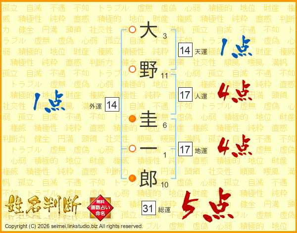大野圭一郎さんの総運は31画の5点!