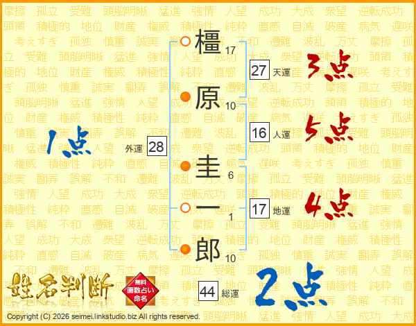 橿原圭一郎さんの総運は44画の2点!