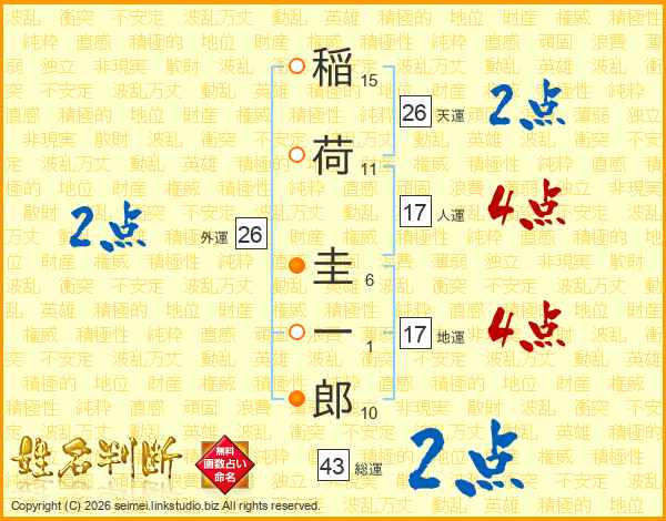 稲荷圭一郎さんの天運は26画の2点!