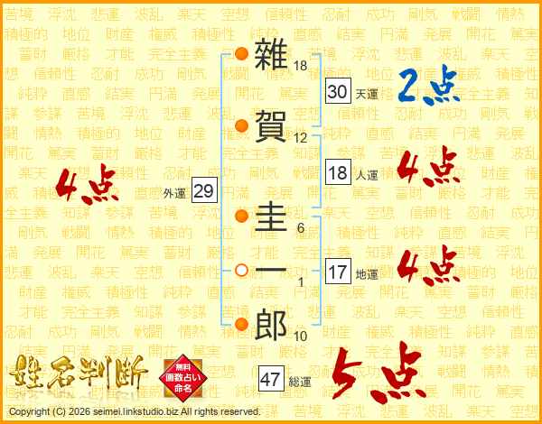 雜賀圭一郎さんの総運は47画の5点!