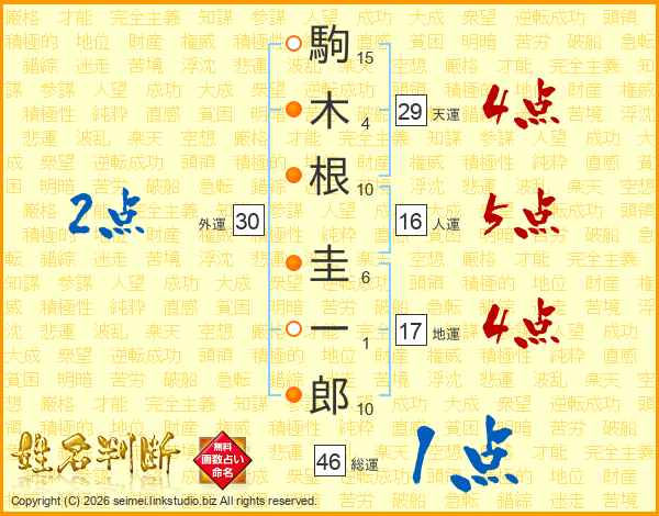 駒木根圭一郎さんの総運は46画の1点!