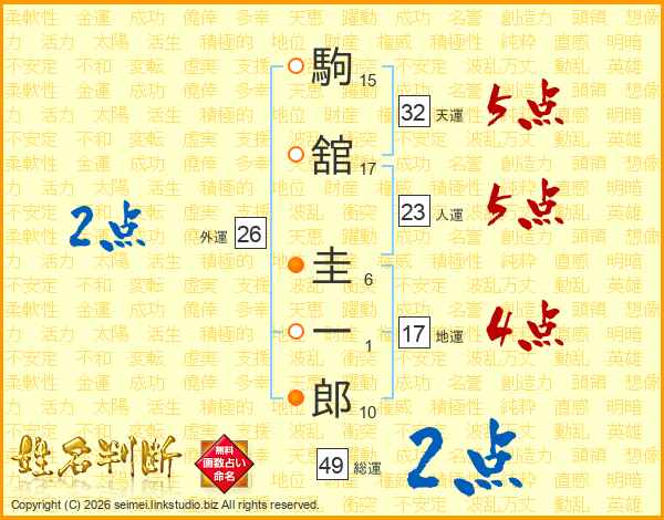 駒舘圭一郎さんの総運は49画の2点!