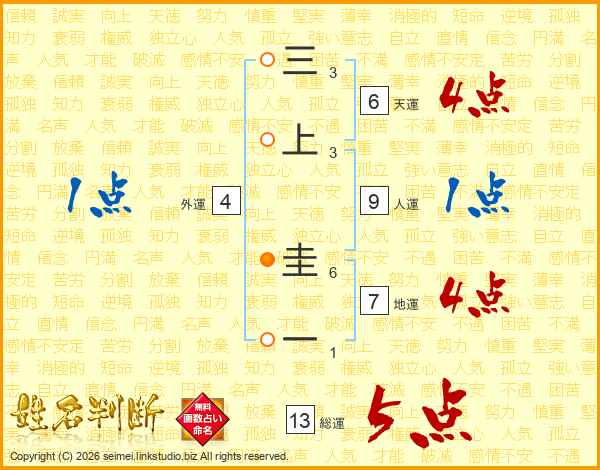 三上圭一さんの総運は13画の5点!