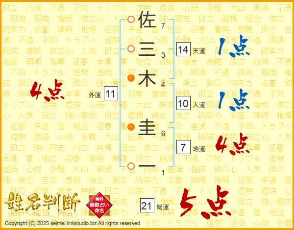 佐三木圭一さんの総運は21画の5点!