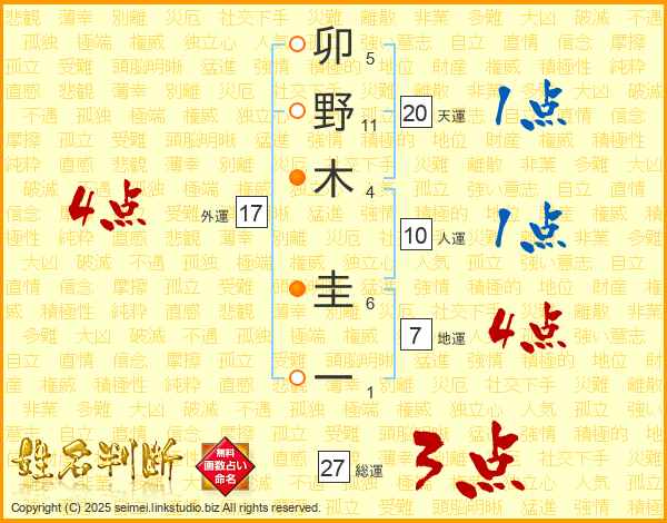 卯野木圭一さんの外運は17画の4点!