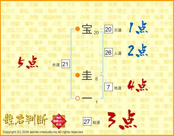 宝圭一さんの総運は27画の3点!