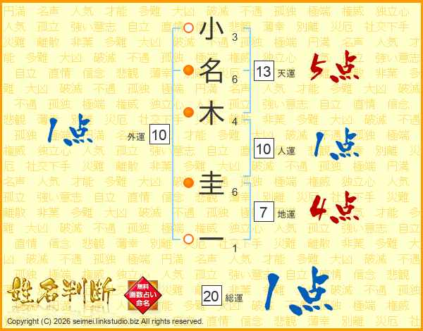 小名木圭一さんの総運は20画の1点!