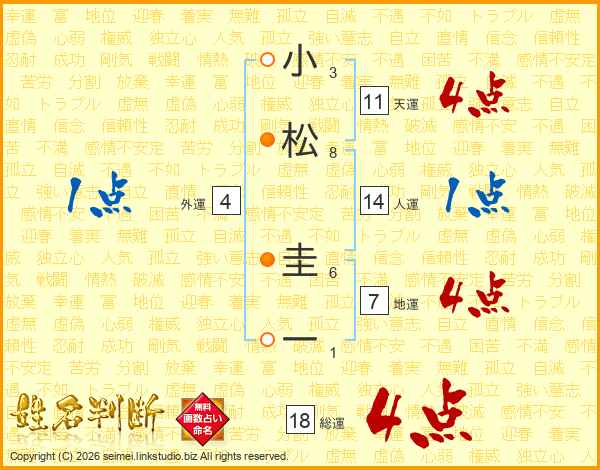 小松圭一さんの総運は18画の4点!