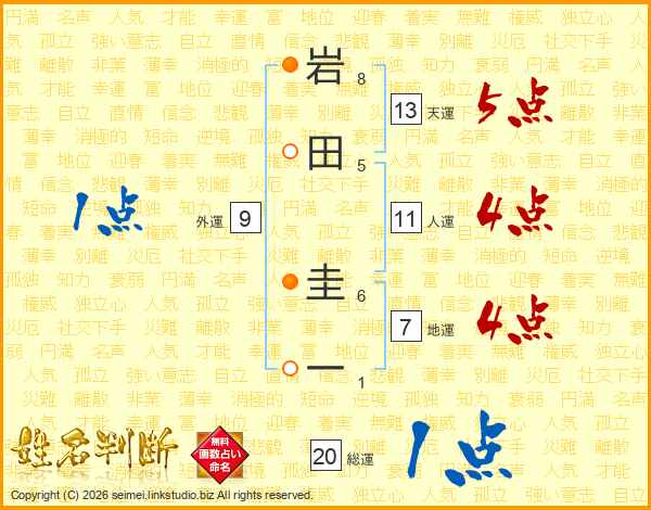 岩田圭一さんの総運は20画の1点!