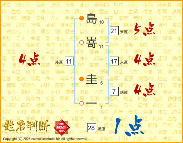 島嵜圭一さんの天運は21画の5点!