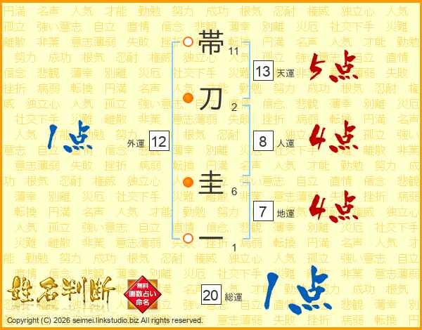 帯刀圭一さんの人運は8画の4点!