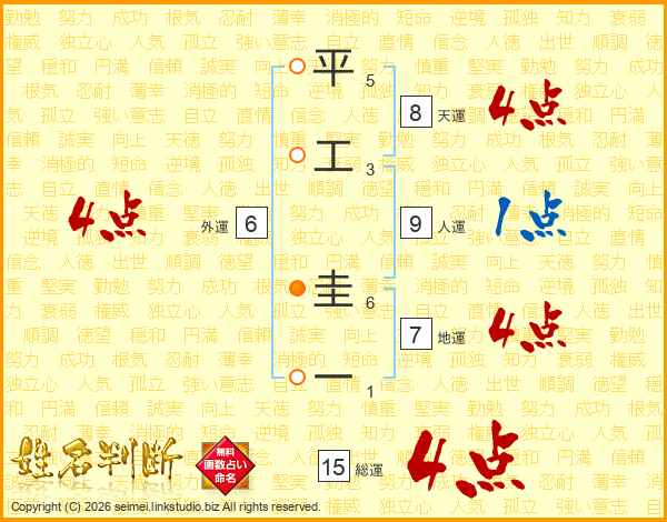 平工圭一さんの総運は15画の4点!