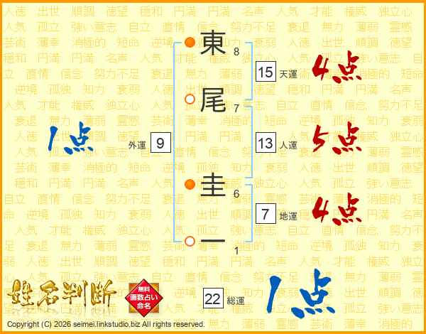 東尾圭一さんの総運は22画の1点!