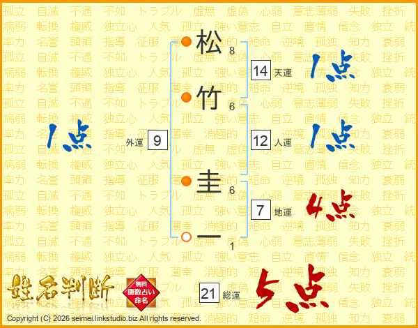 松竹圭一さんの総運は21画の5点!