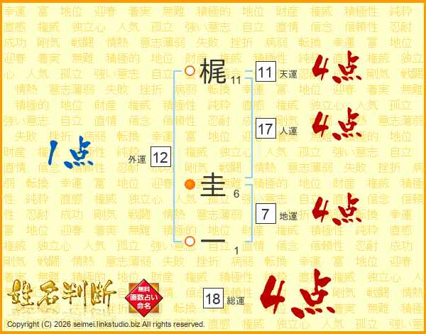 梶圭一さんの人運は17画の4点!