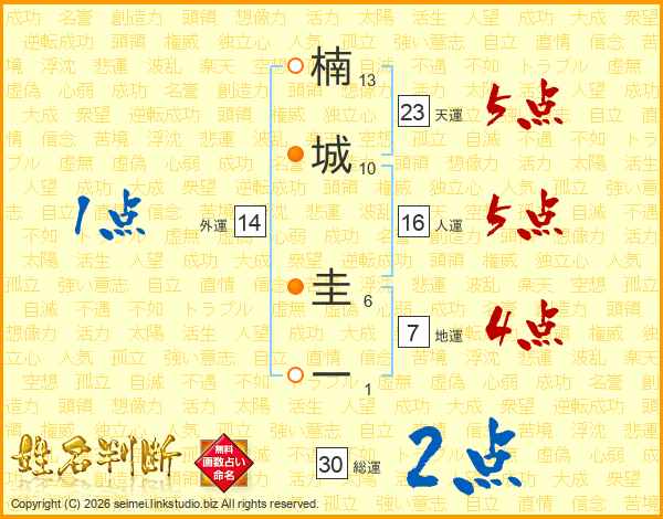 楠城圭一さんの天運は23画の5点!