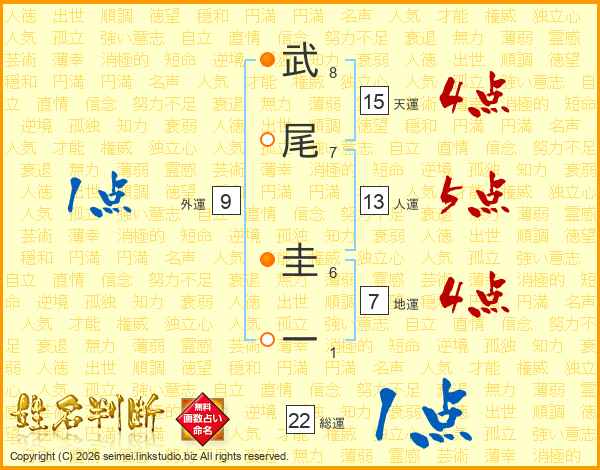 武尾圭一さんの総運は22画の1点!