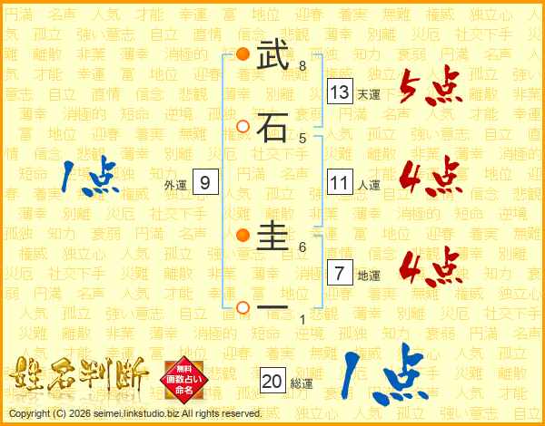 武石圭一さんの天運は13画の5点!