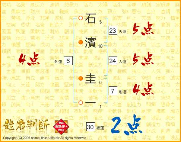 石濱圭一さんの天運は23画の5点!