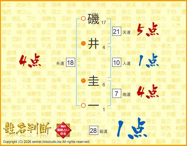 磯井圭一さんの外運は18画の4点!