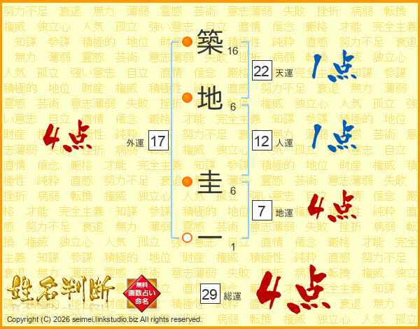 築地圭一さんの地運は7画の4点!