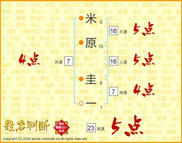 米原圭一さんの総運は23画の5点!