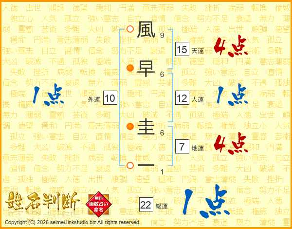 風早圭一さんの総運は22画の1点!
