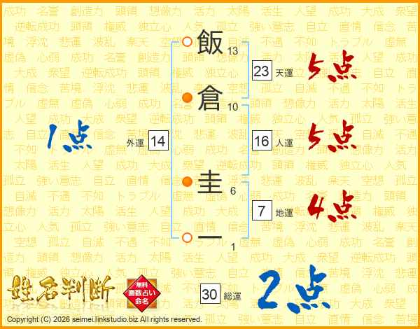 飯倉圭一さんの総運は30画の2点!