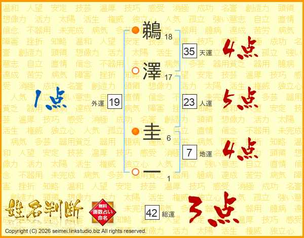 鵜澤圭一さんの人運は23画の5点!