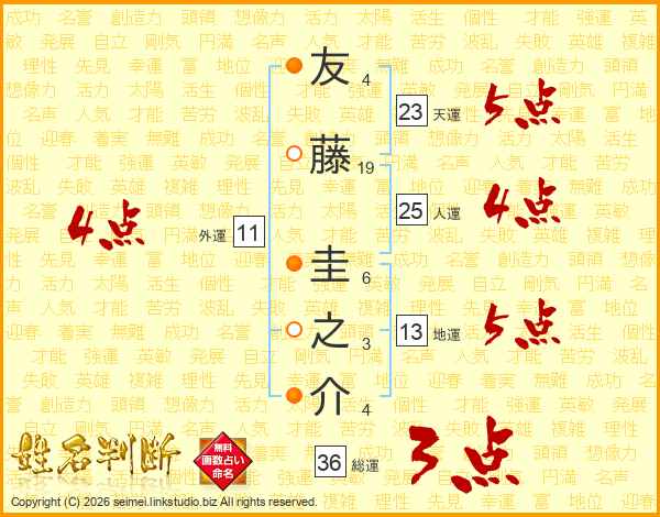 友藤圭之介さんの天運は23画の5点!