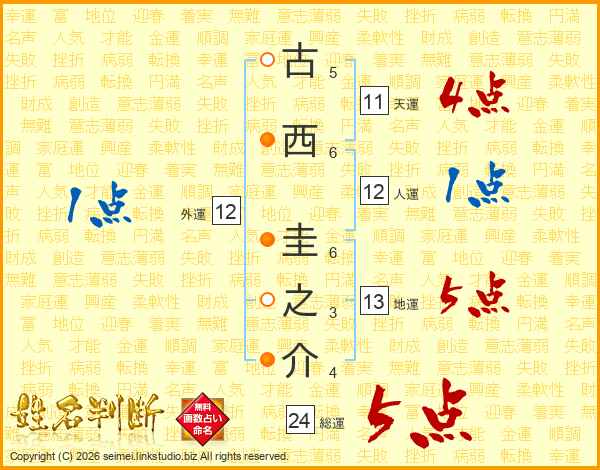 古(5画)西(6画) 圭(6画)之(3画)介(4画)