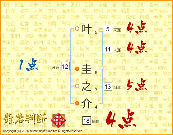 叶圭之介さんの総運は18画の4点!