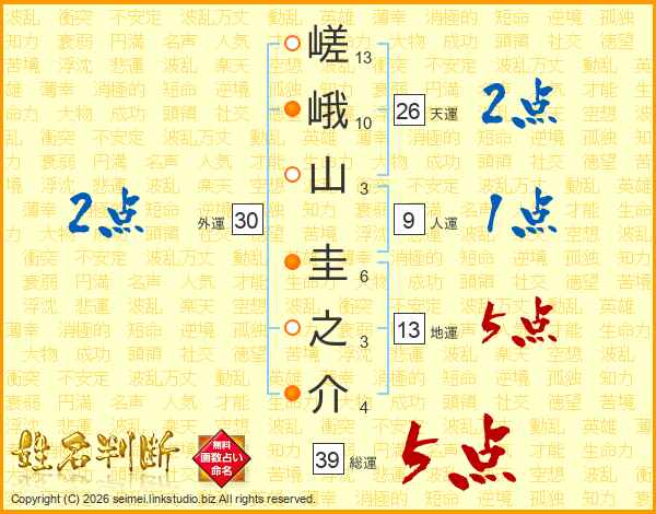 嵯峨山圭之介さんの総運は39画の5点!