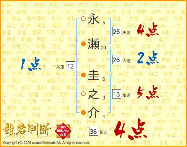 永(5画)瀬(20画) 圭(6画)之(3画)介(4画)