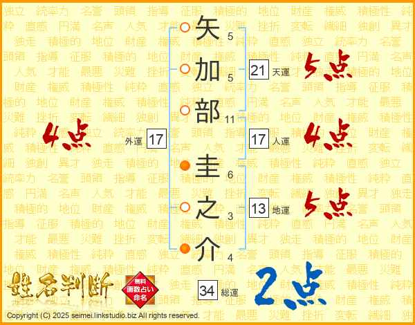 矢(5画)加(5画)部(11画) 圭(6画)之(3画)介(4画)