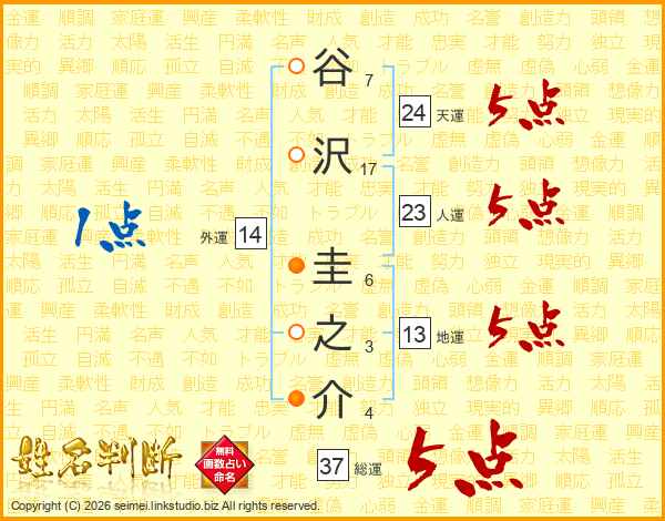 谷(7画)沢(17画) 圭(6画)之(3画)介(4画)