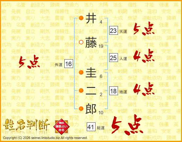 井藤圭二郎さんの総運は41画の5点!