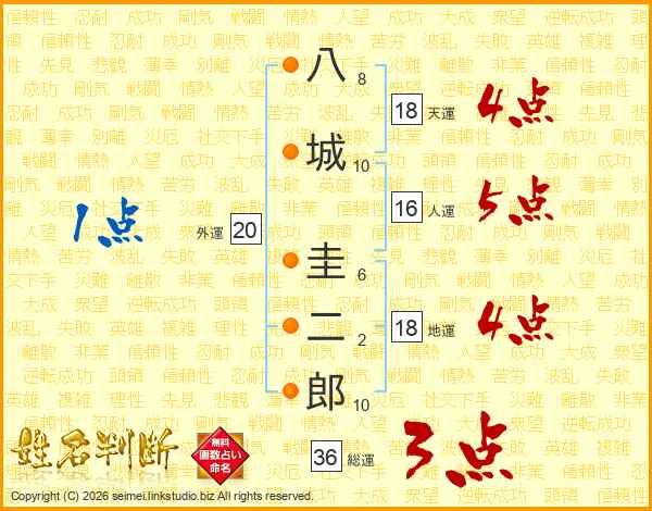 八(8画)城(10画) 圭(6画)二(2画)郎(10画)