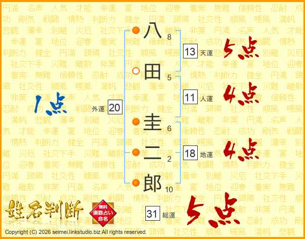 八田圭二郎さんの総運は31画の5点!