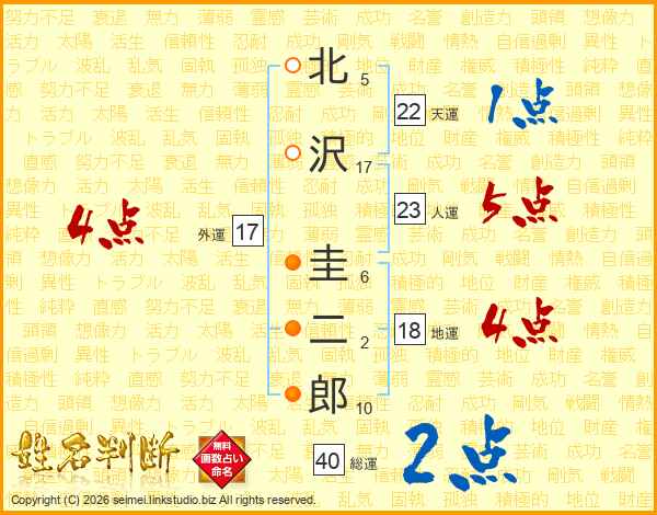 北沢圭二郎さんの人運は23画の5点!