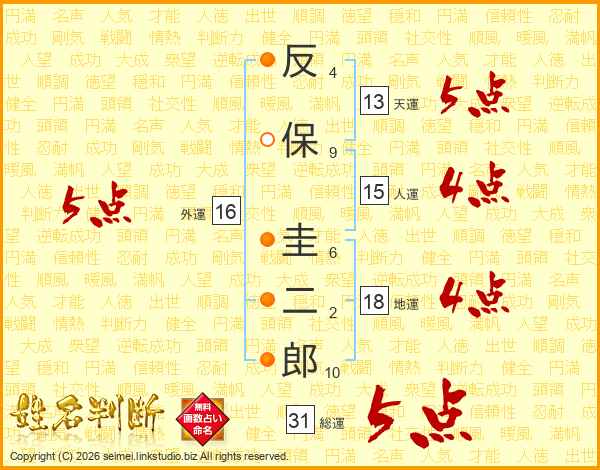 反保圭二郎さんの総運は31画の5点!