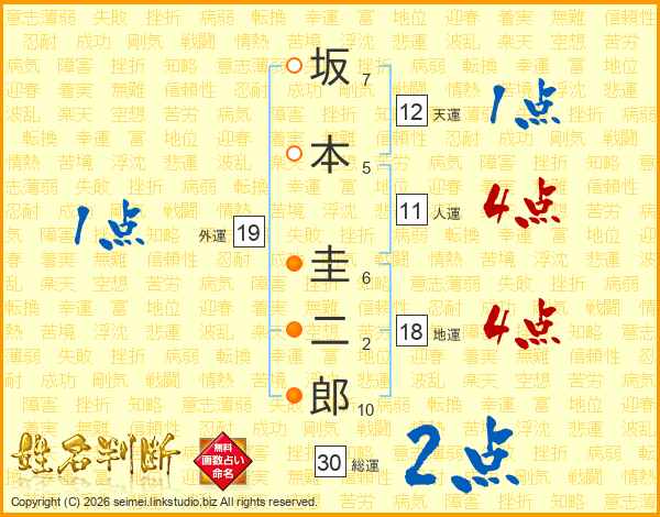 坂本圭二郎さんの総運は30画の2点!