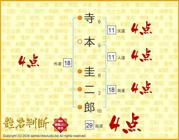 寺本圭二郎さんの総運は29画の4点!