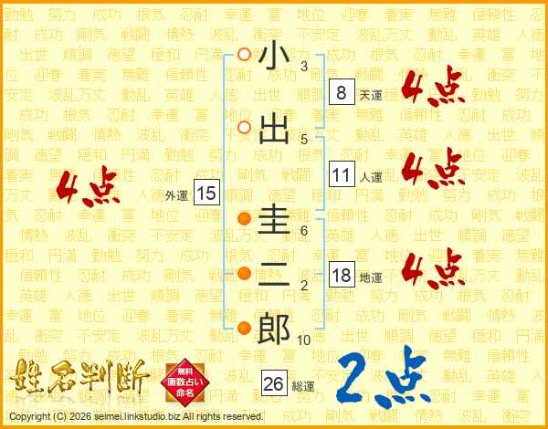 小出圭二郎さんの総運は26画の2点!