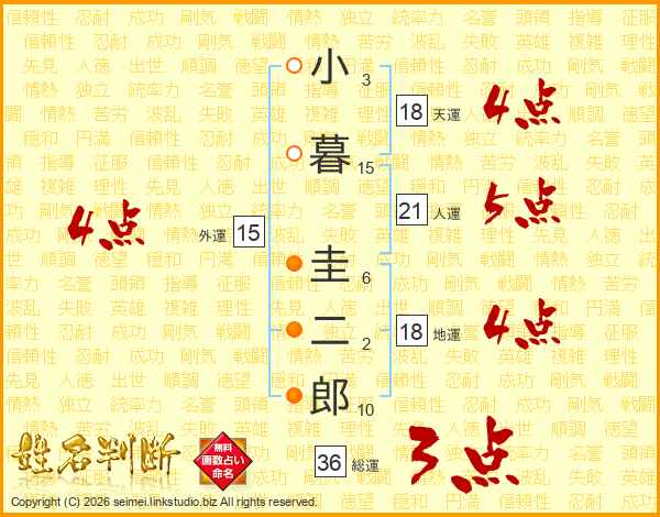 小暮圭二郎さんの総運は36画の3点!