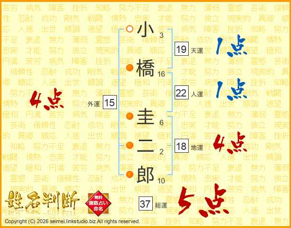 小橋圭二郎さんの総運は37画の5点!