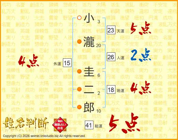 小瀧圭二郎さんの総運は41画の5点!